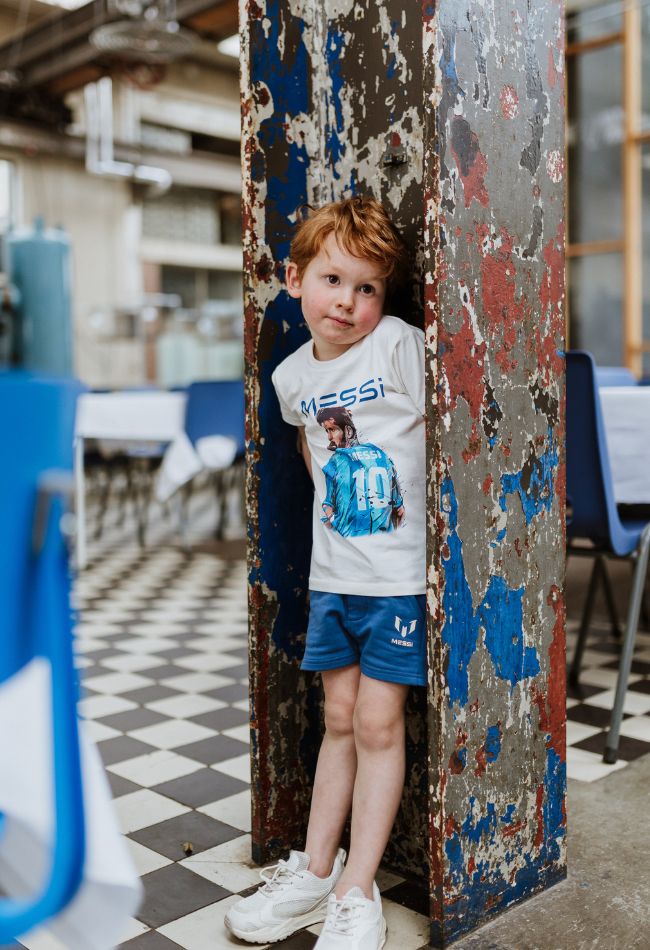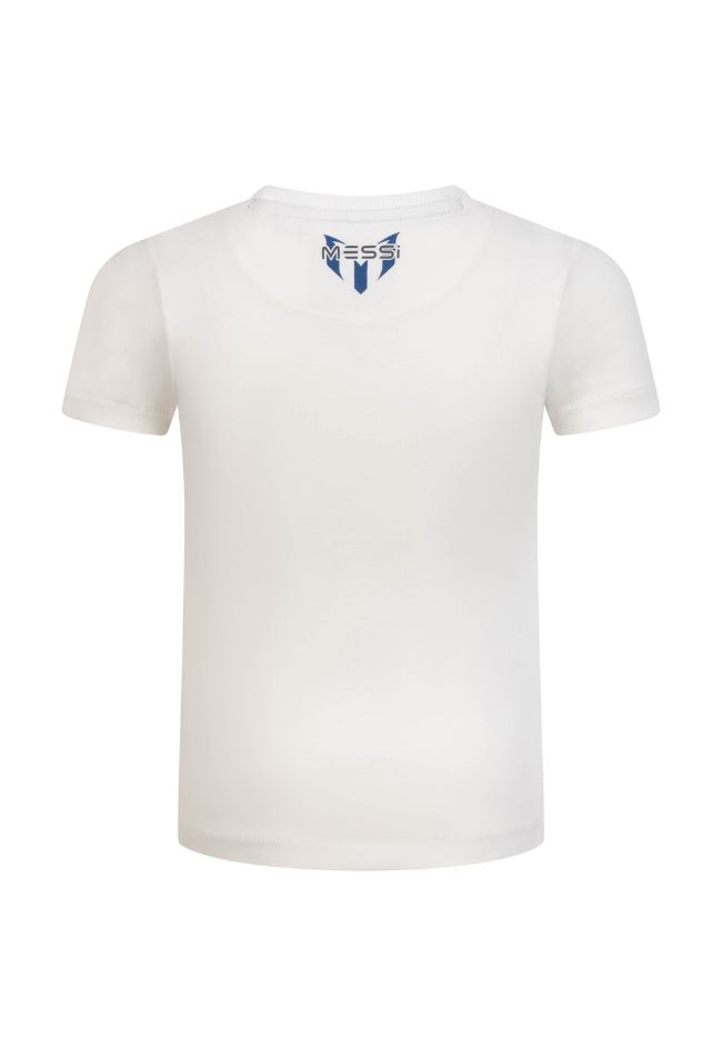 Dit jongens T-shirt heeft op de voorkant een grote Messi print.