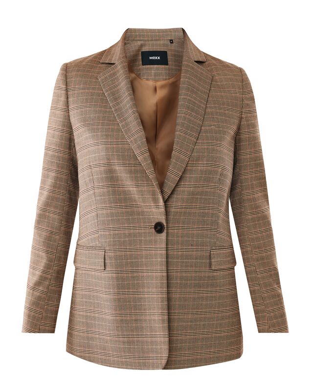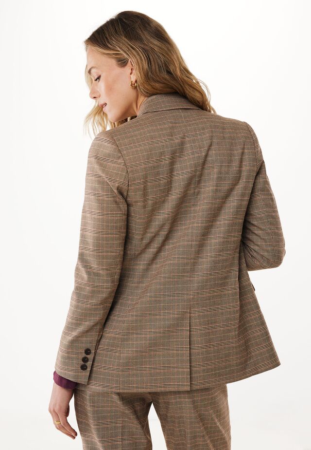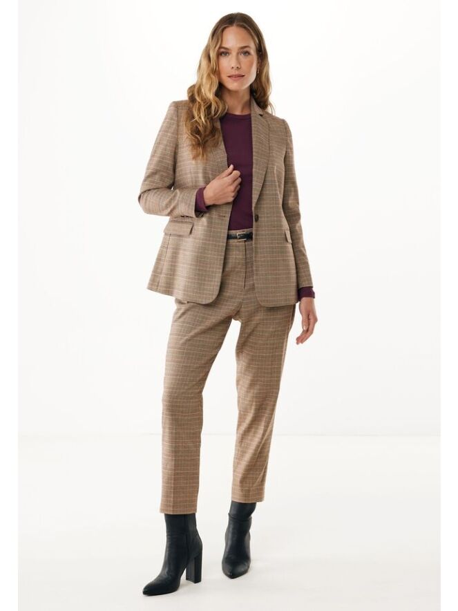 Prachtige geruite blazer in mooie bruintinten. Deze checked blazer valt mooi op lengte en is mooi te combineren op een nette pantalon of jeans. P.S. de bijpassende pantalon is ook bij ons verkrijgbaar.