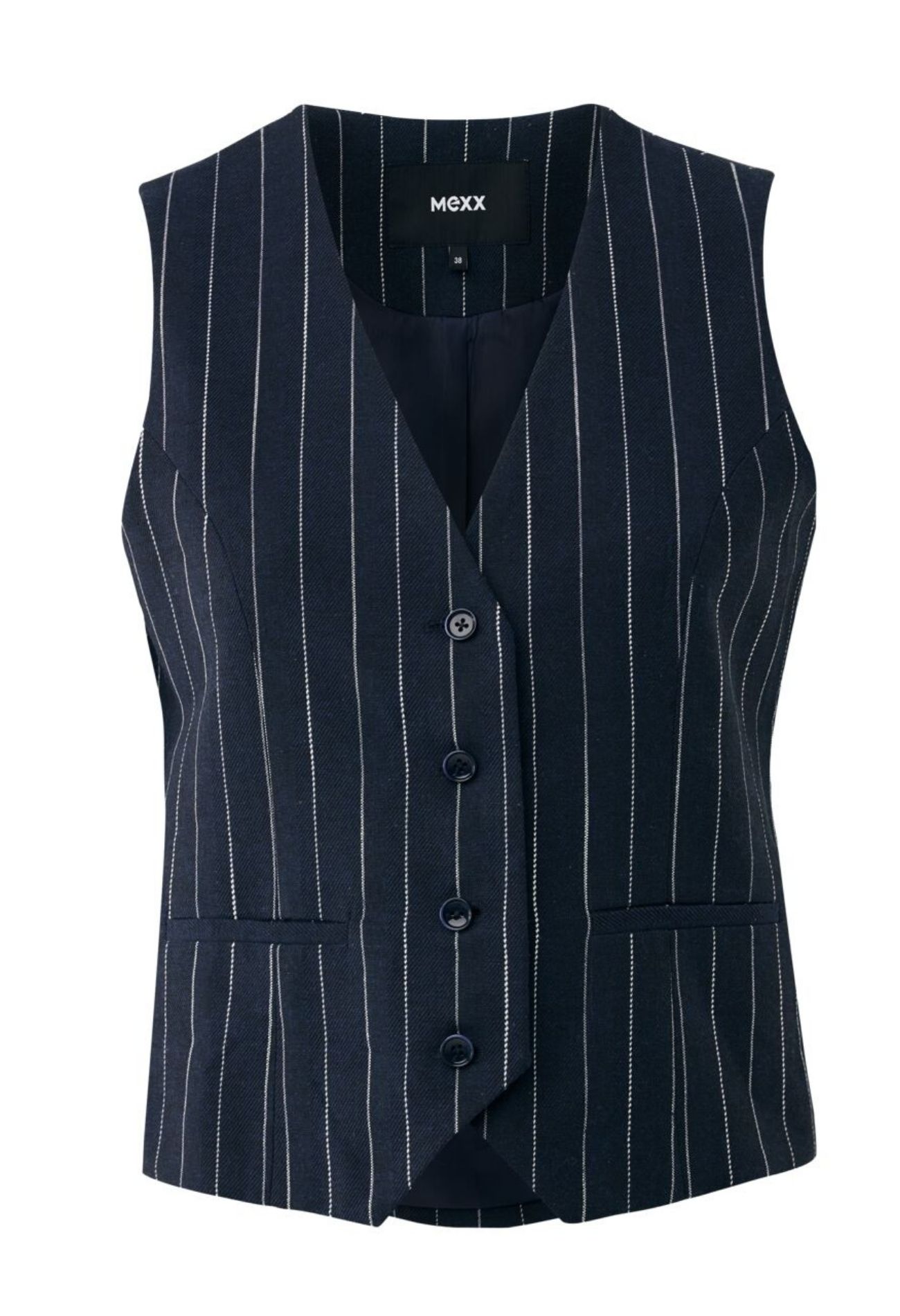 Deze pinstripe heeft een samenstelling van 77% katoen en 17% linnen en draagt daardoor ook op warmere dagen comfortabel! Hou je van een leuke set? Kijk dan ook eens bij de pinstripe pantalon van Mexx voor de ultieme co-ord set.