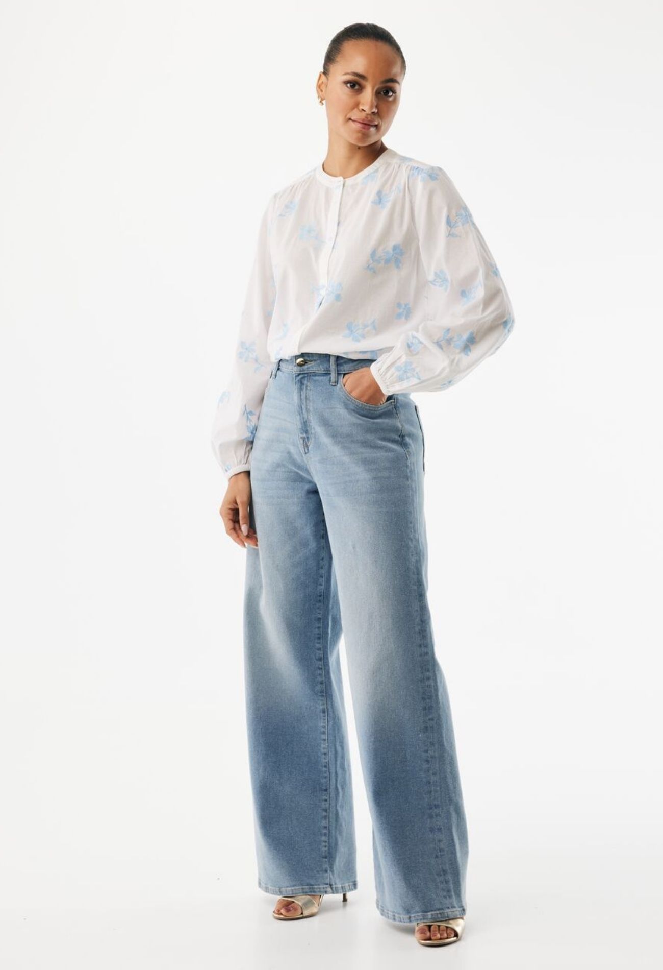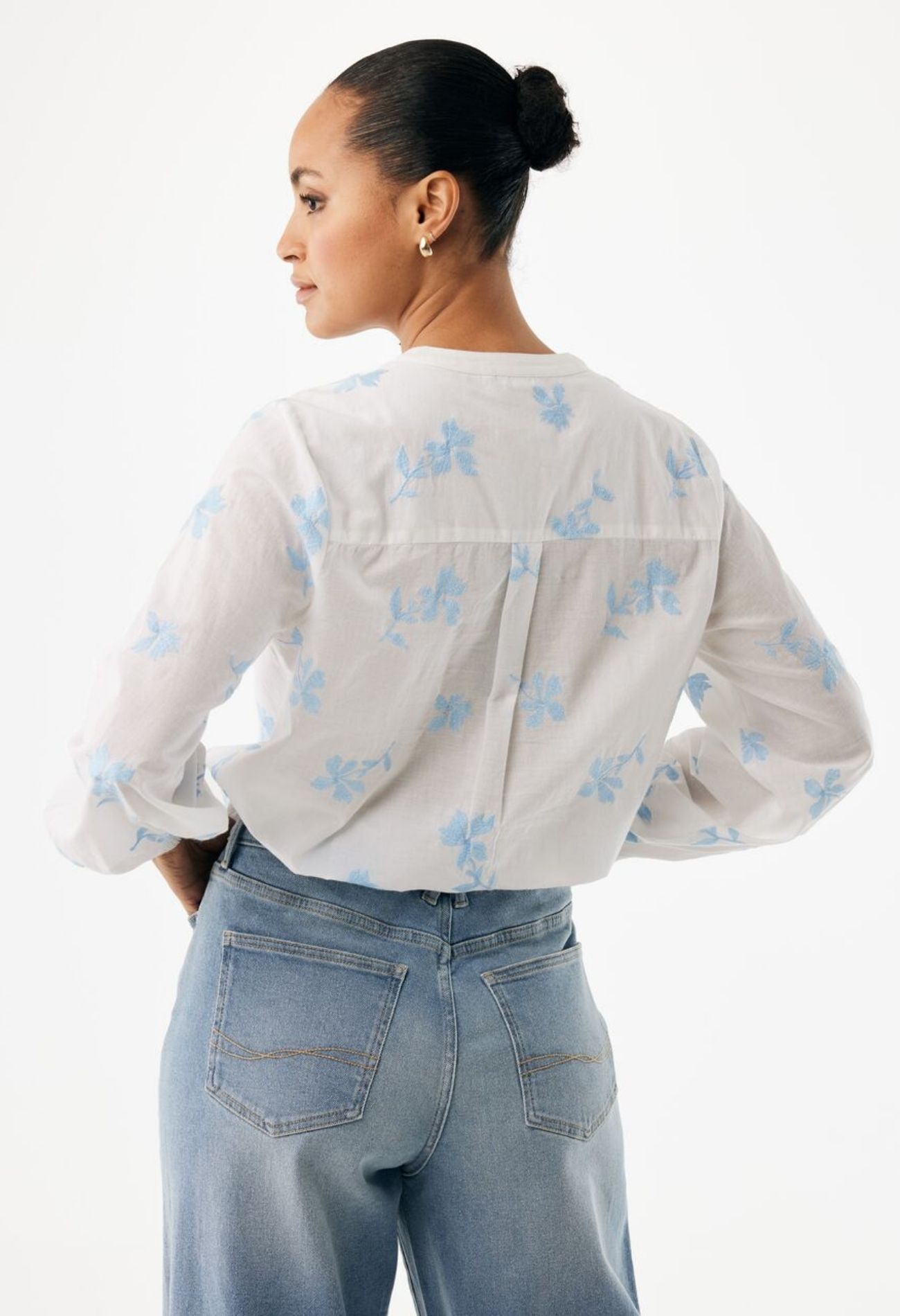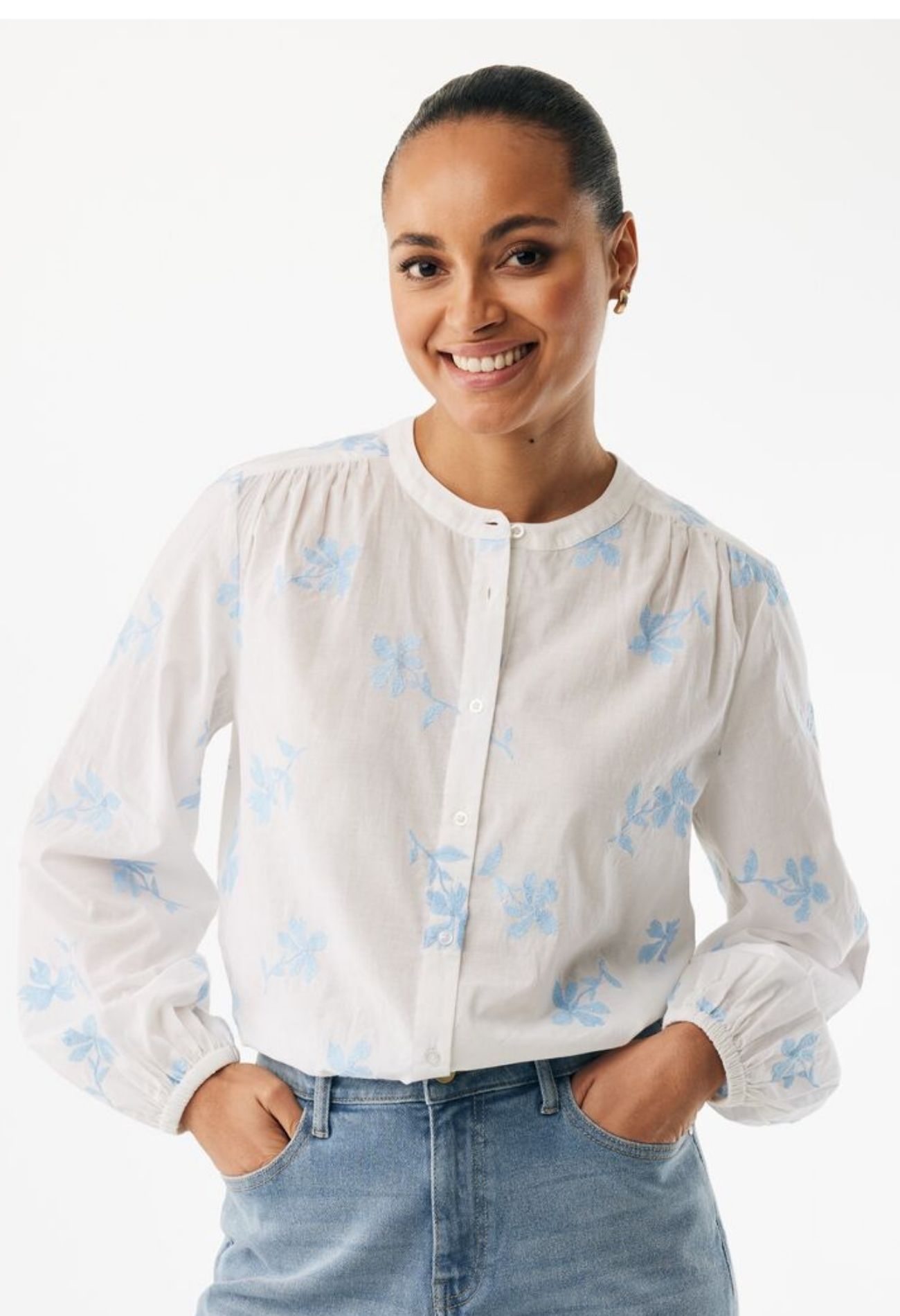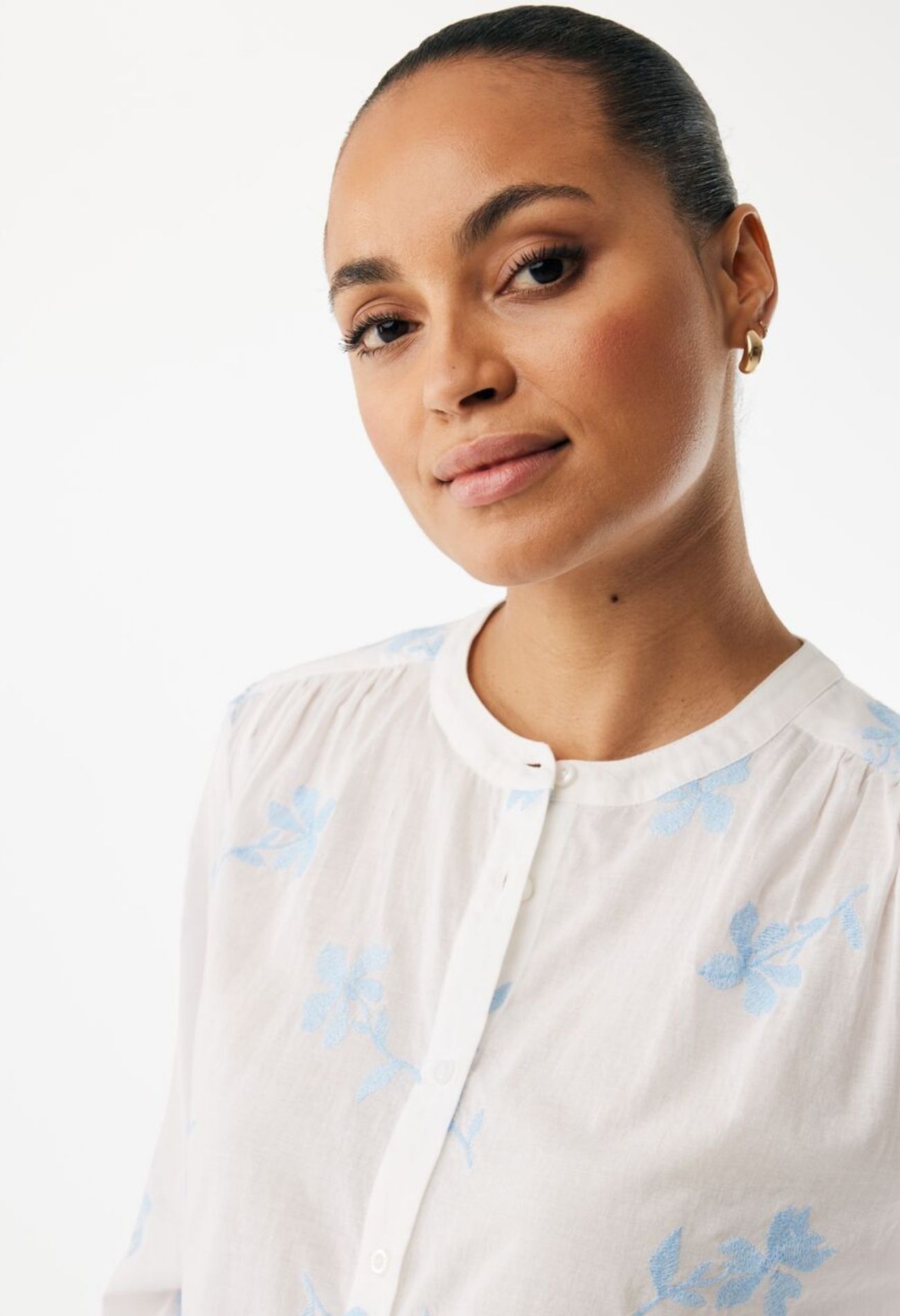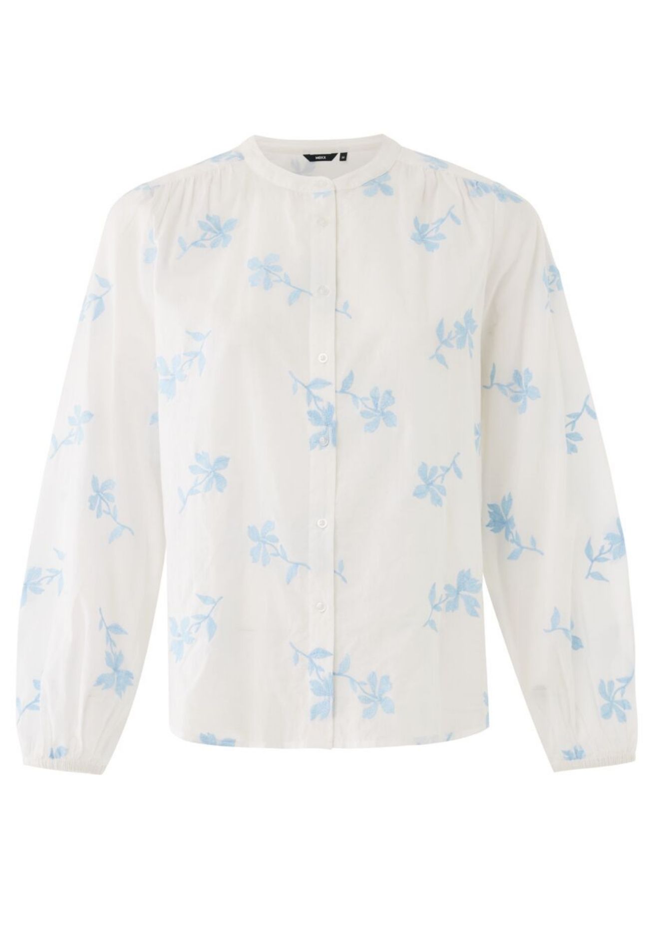 Deze zomerse blouse heeft een mooie allover geborduurde bloemenprint. Voor een casual look prima te combineren op een mooie jeans. Style je liever wat netter af? Hij doet het ook goed op een nette pantalon.