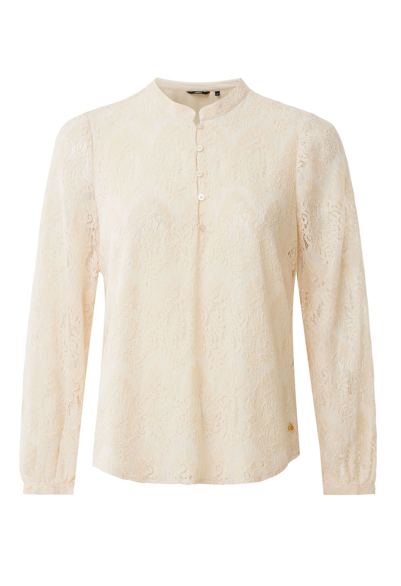 Prachtige lace blouse in cremekleur met mooi bloempatroon. De armen zijn doorschijnend, voor het lijfje hebben ze hier een binnenshirt van katoen onder verwerkt. Deze chique blouse draag je stijlvol op een nette pantalon maar misstaat ook zeker niet op een mooie jeans.