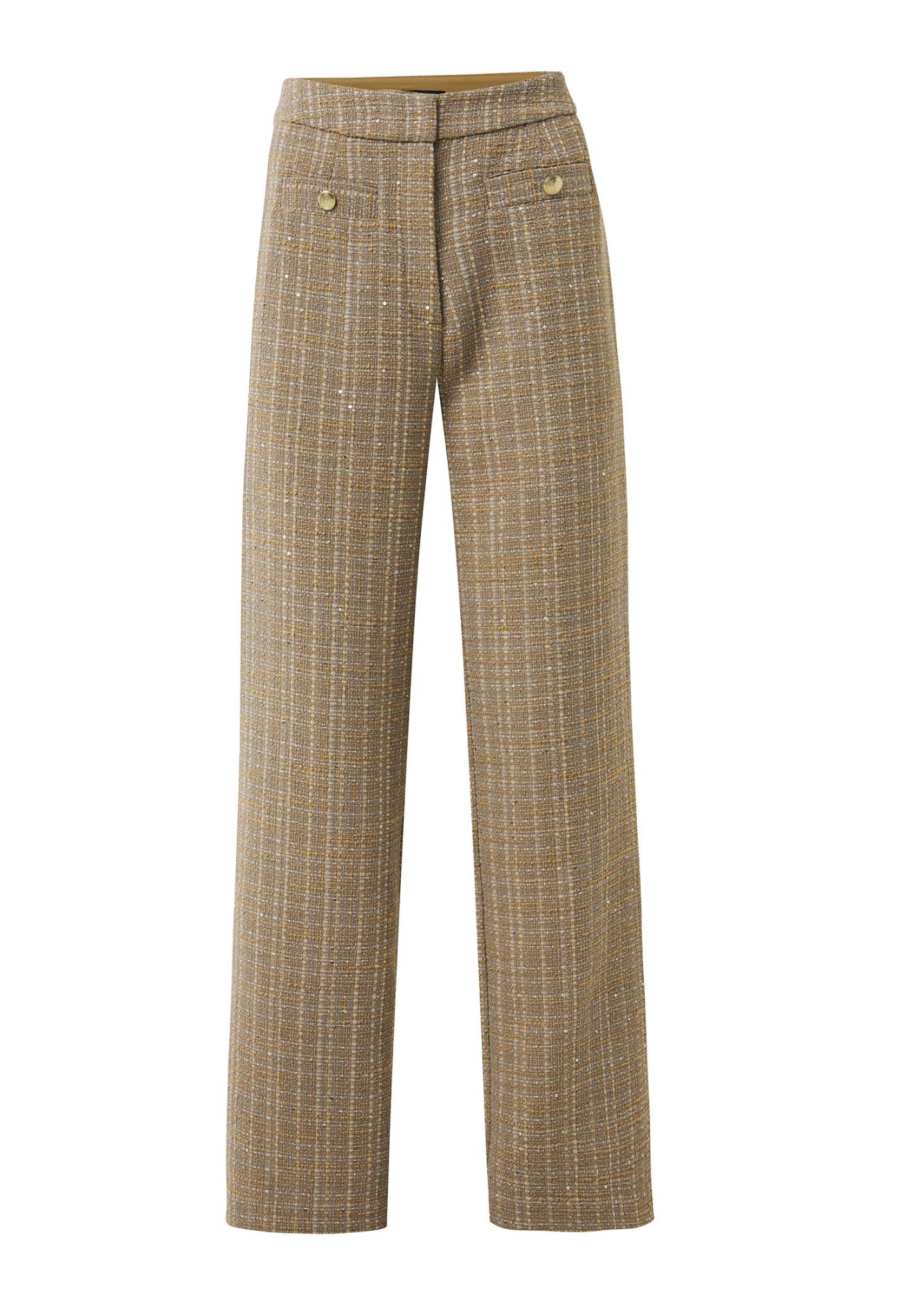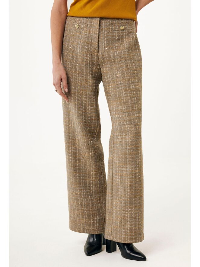 Deze stijlvolle straight fit broek voegt klassieke elegantie aan je garderobe toe met een verfijnde multicolor tweed patroon. Gemaakt van polyester voor optimaal draagcomfort, biedt deze broek een tijdloze look dankzij de rechte pijpen en uitgesproken knoopdetails. Combineer gemakkelijk met een effen blouse of lichtgekleurde trui voor een verfijnde, dagelijkse outfit.