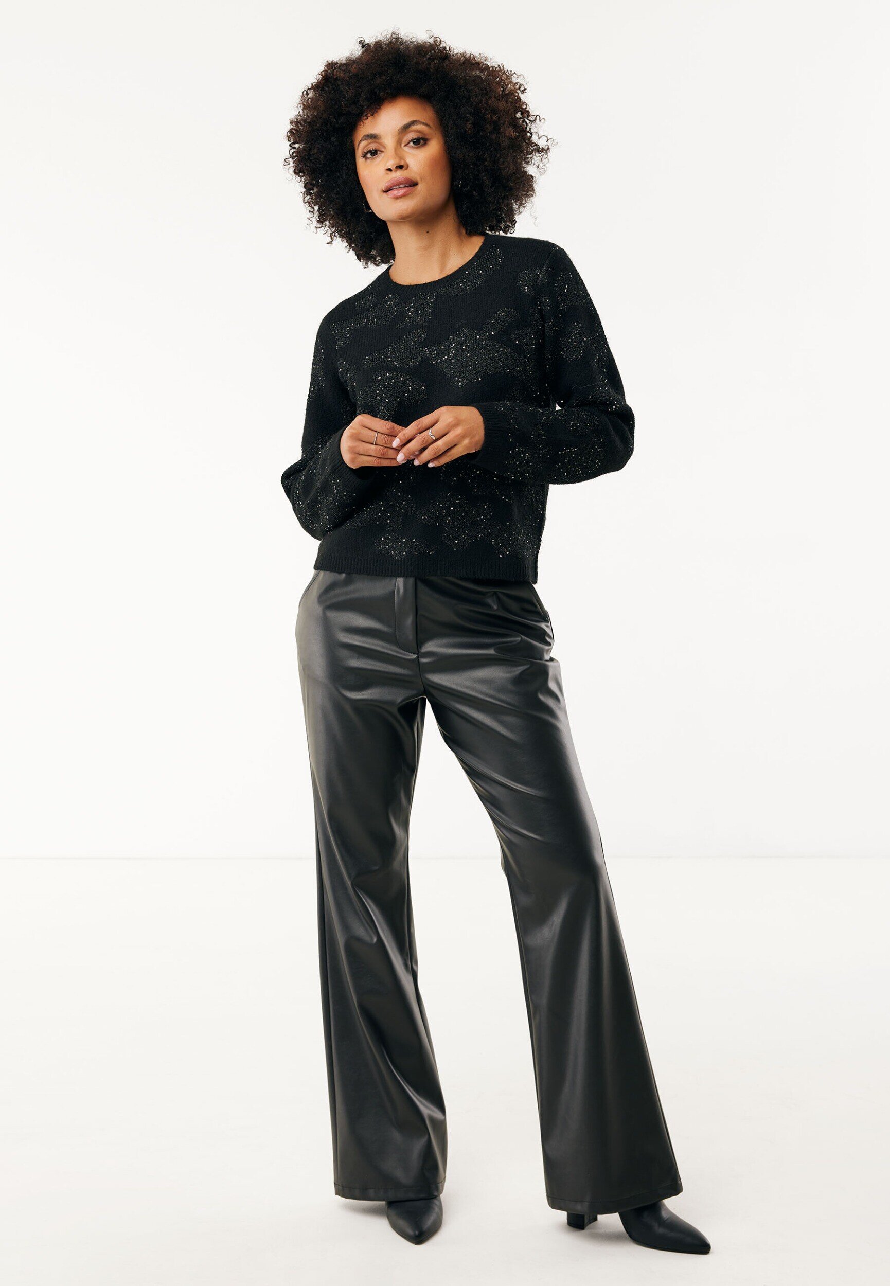 Voor een stoere en eigentijdse look is deze PU leather broek je ultieme statement piece! Met fijne steekzakken en sier paspelzakken achterop .