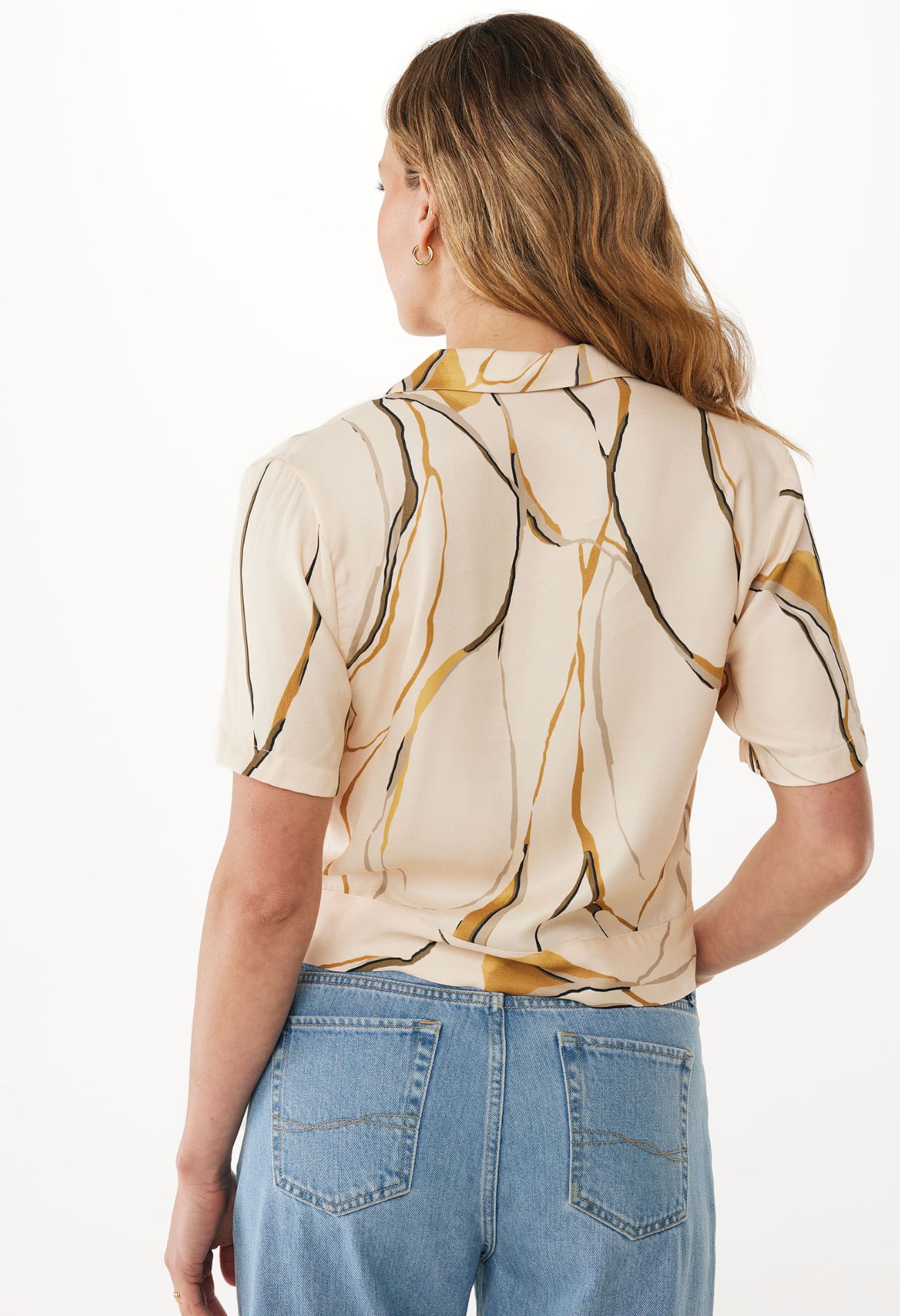 Deze top met geometrische print straalt een casual stijl uit door de multicolor tinten. Gemaakt van luchtige viscose, biedt deze blouse comfort gedurende de dag. De korte mouwen, knoopjes en het strikdetail geven een speelse touch. Combineer de top moeiteloos met een lichte spijkerbroek voor een frisse uitstraling.