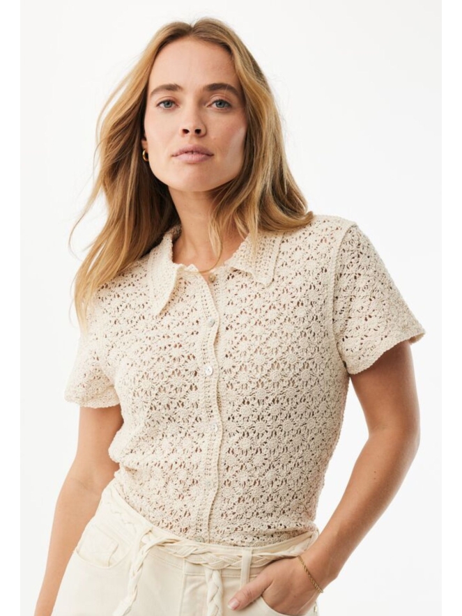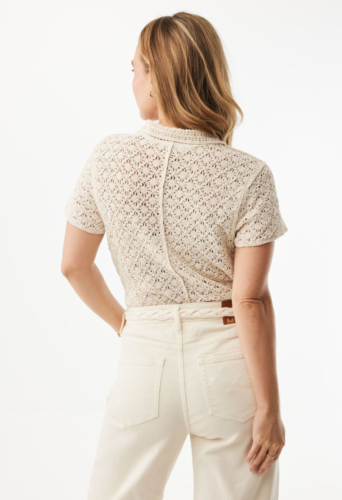 Deze stijlvolle crochet top van Mexx straalt tijdloze elegantie uit. De lichte zandkleur geeft het ontwerp een zachte, natuurlijke uitstraling die moeiteloos te combineren is met verschillende tinten en stijlen. Het verfijnde crochetpatroon zorgt voor een subtiele, vrouwelijke touch en geeft de top een luchtig en zomers karakter. Dankzij het klassieke ontwerp is dit item zowel casual als gekleed te dragen, perfect op een jeans voor een ontspannen look of gecombineerd met een nette broek of rok voor een meer verfijnde uitstraling.