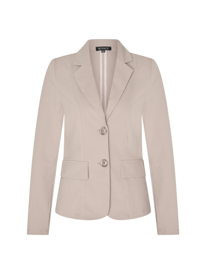 Travel blazer van Mi Piace. Een goede basis voor in iedere kledingkast. Met bijna ieder seizoen een frisse nieuwe kleur. Nieuwste kleur Espresso!