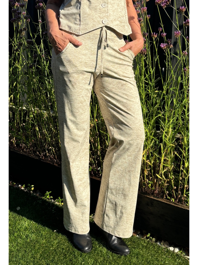 Alweer zo'n ontzettend fijne travel broek van Mi Piace. Dit model met rechte wijde broekspijpen heeft de oude vertrouwde fit met steekzakken en het welbekende koordje uit de tailleband. Combineer hem met het bijpassende giletje met art.nr. 202294 2-tone of een simpel wit T-shirtje en je bent Good To Go!