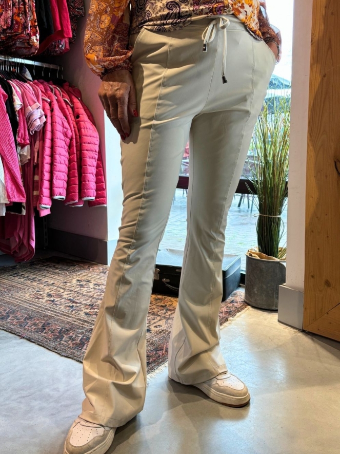 Nette flair broek gemaakt van travel stof zoals je het gewend bent van Mi Piace. Met steekzakken en twee sier klepzakken achterop.