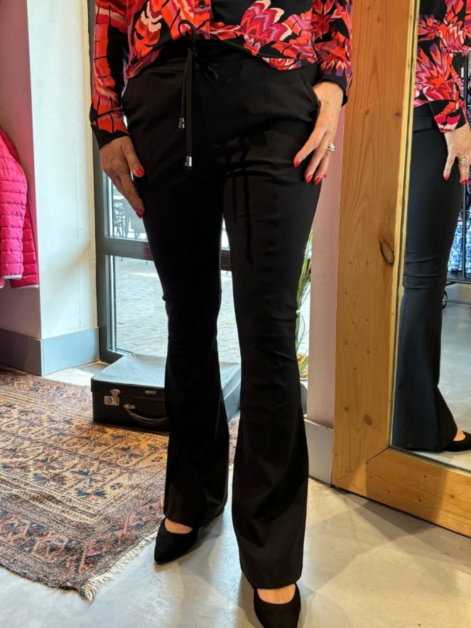 Nette flair broek gemaakt van travel stof zoals je het gewend bent van Mi Piace. Met steekzakken en twee sier klepzakken achterop.