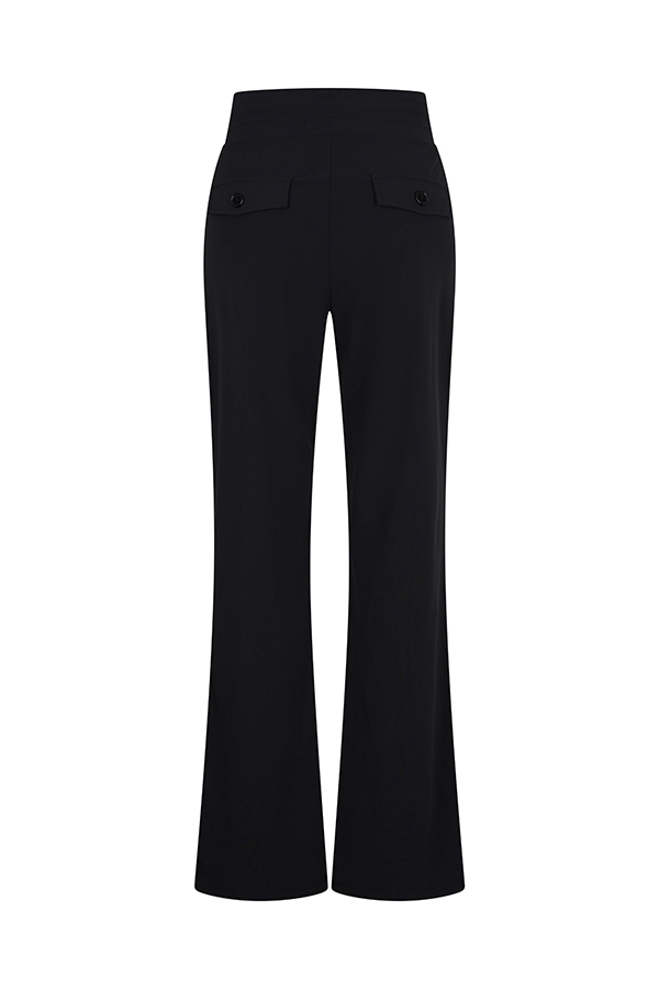 Weer een heerlijk comfortabele travel broek van Mi Piace in de nieuwste trendkleur Espresso donker bruin. Deze pantalon is een recht model met fijne steekzakken en sierkleppen achterop.