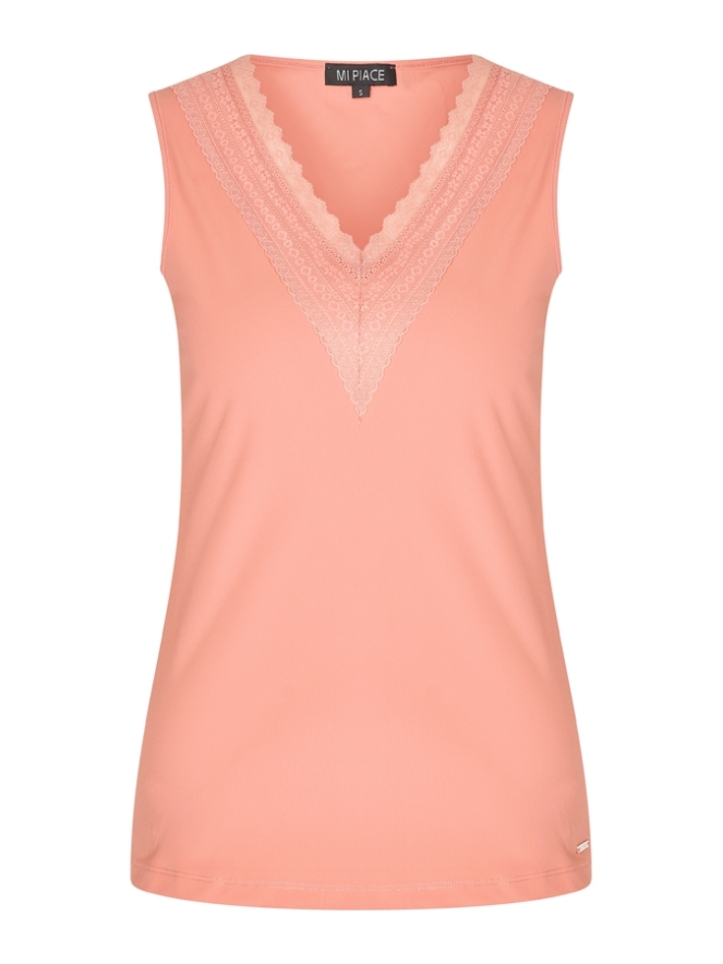 Deze basic singlet van Mi Piace met sierlijke V hals is perfect onder een blazertje maar ook zo te dragen. Door de travel stof draagt dit hemdje heerlijk!