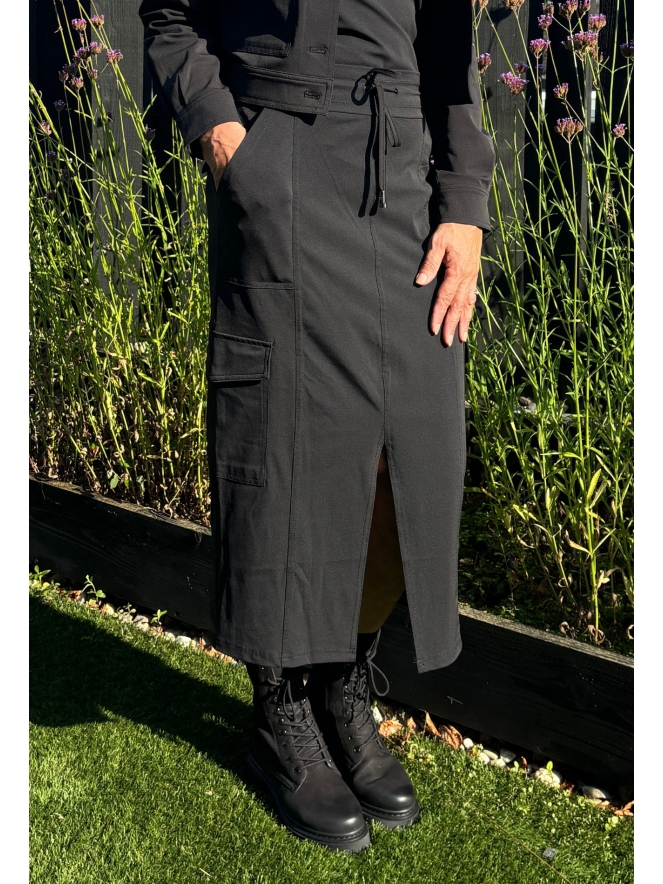 Deze enorm stoere cargo travel rok is een hardloper in onze winkels! Hij is er in het zwart en kit. Heerlijk comfortabel met de steekzakken en fijne tailleband met welbekend koord wat je gewend bent van Mi Piace. Draag er een T-shirtje op en je bent al klaar. Eindeloos te combineren. Must have in iedere garderobe! Aan de voorzijde zit een split voor een vlotte uitstraling en niet de vergeten de cargo zakken op de zijkanten. Run baby run!