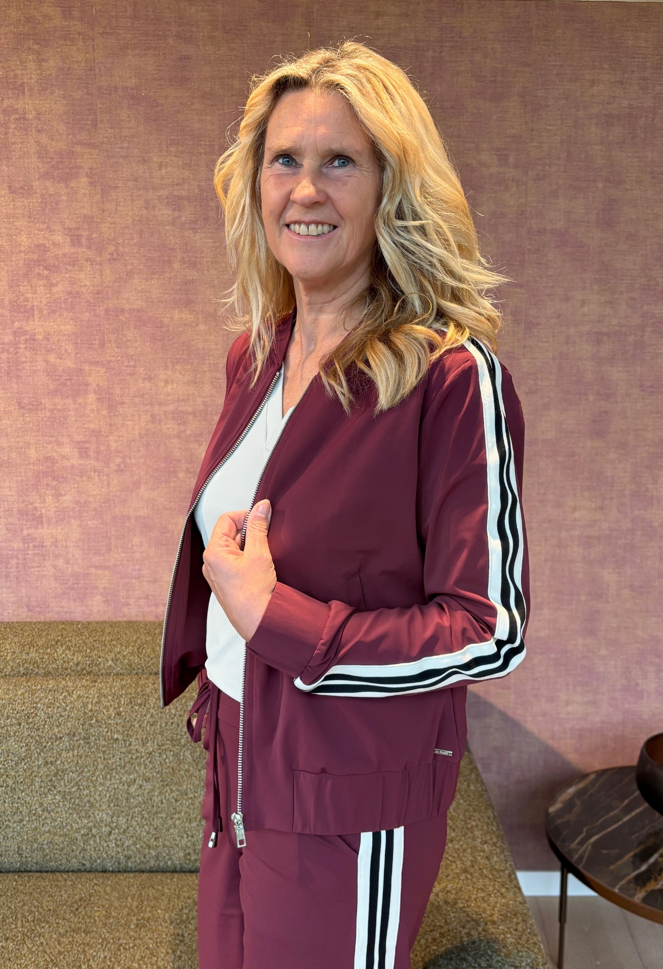 De bordeaux is op de foto met een marine streep maar het betreft dus een zwarte streep.