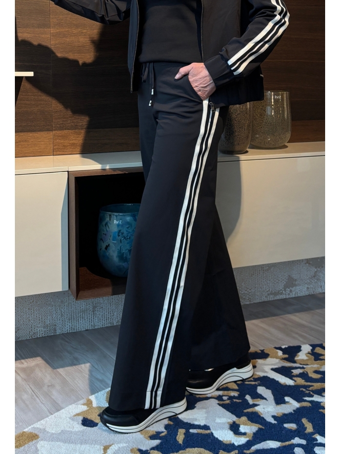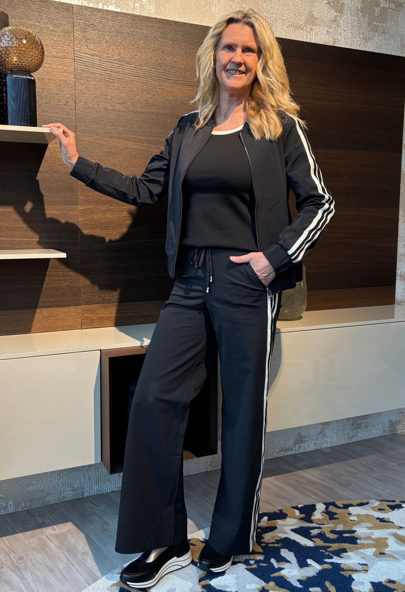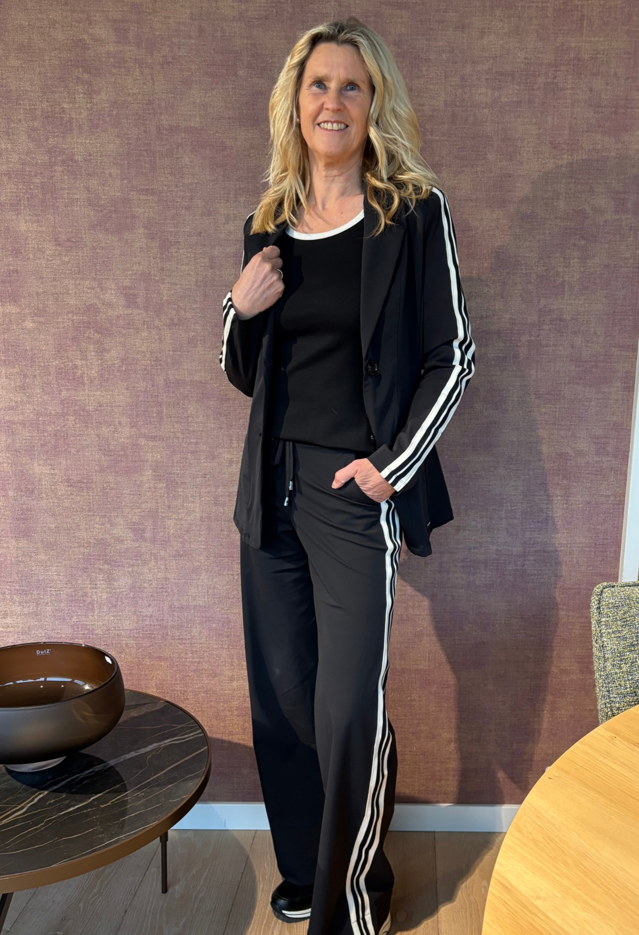 Trendy broek van Mi Piace met een wide fit en een gestreepte bies op de zijkant van de broek. Met fijne steekzakken en de welbekende sier klepzakjes achterop. Wist je dat we het hele pak voor je hebben? Stijl het af met een sporty blazer of net jack in bombermodel.