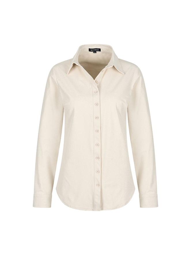 Travelstof blouse voor dames. De blouse is van travel stof en valt op maat. Met een klein punt kraagje.