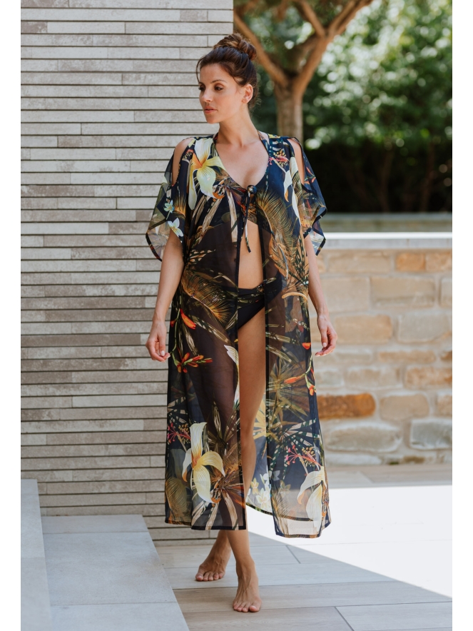 De Maxi Beach Cover Jurk van Mila is de perfecte aanvulling op je strandoutfit. Deze jurk heeft een elegante strikdetail bij de buste, die een verfijnde touch toevoegt, en een subtiele opening op de schouders voor een vleugje speelsheid. De vlindermouwen geven de jurk een luchtige en vrouwelijke uitstraling. Het luchtige ontwerp en de vloeiende stof maken het ideaal voor een stijlvolle look langs het water. Combineer deze prachtige cover-up met het badpak of de bikini van Mila voor een complete en chique strandoutfit, perfect voor zonnige dagen.