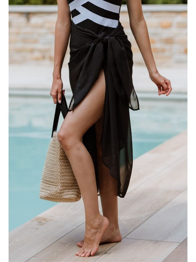 Deze elegante pareo van Mila, is de perfecte cover-up voor een stijlvolle strandlook. Gemaakt van luchtig, sneldrogend materiaal en ontworpen om moeiteloos om te slaan over je badkleding. Dankzij het tijdloze design is de pareo ideaal te combineren met badpak P55204-23 of andere badpakken, bikini?s en tankini?s uit de collectie. Een onmisbaar item voor zon, zee en stijl.