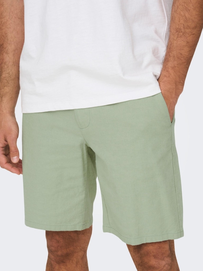 Deze chino short combineert comfort en stijl feilloos. Combineer hem met een T-shirt voor een casual look of draag er een overhemd op voor een netter afgekleed voorkomen. Doordat er linnen verwerkt is in deze short ben je verzekerd van een lichtgewicht, luchtig en comfortabel exemplaar welke niet mag missen in jouw kledingkast.