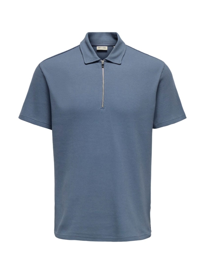 Fijne polo van dun wafelkatoen. Deze polo heeft een rits in plaats van knopen.
