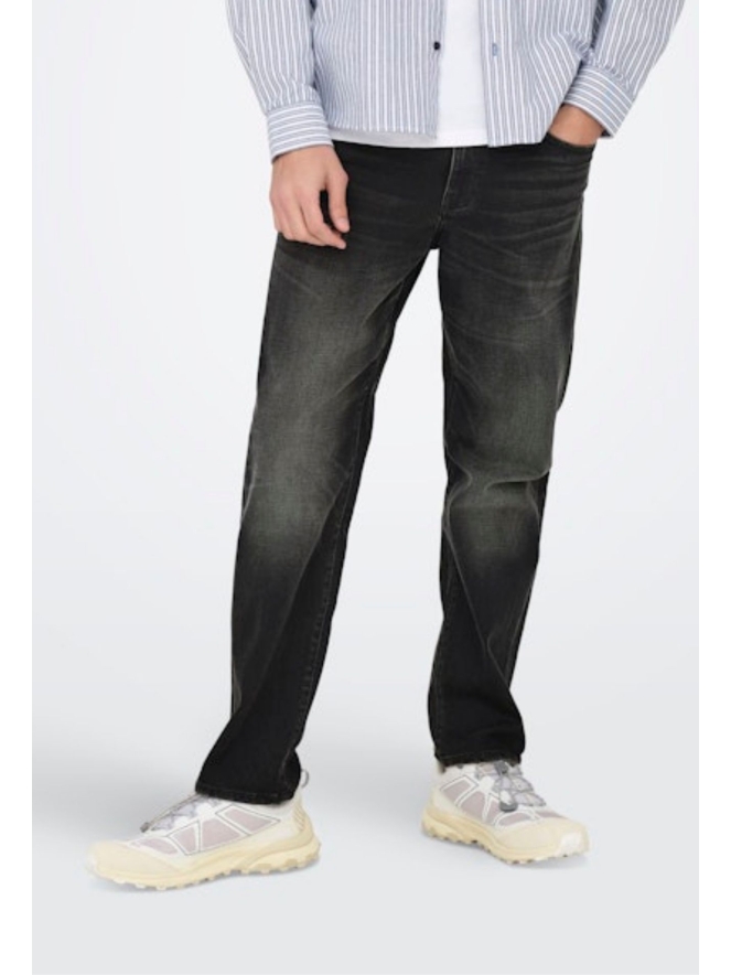 Deze donkergrijze denim van Only & Sons heeft een regular straight fit.