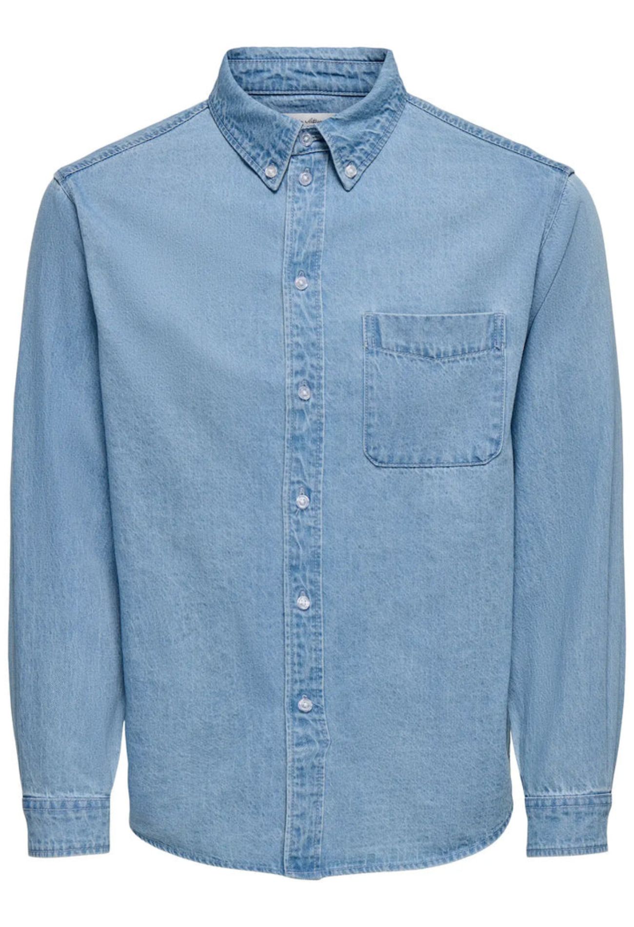 Prachtig klassiek Denim overhemd van Only & Sons. Dit overhemd geeft je een nonchalante look en is van alle tijden. De kleur van het overhemd komt overeen met de productfoto's van de voor en achterkant.