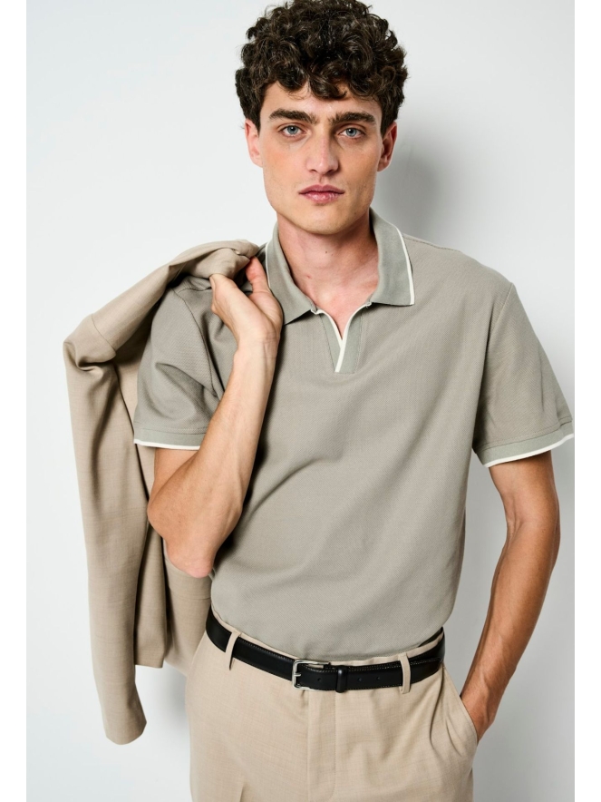 Stijlvol, comfortabel en net even anders: deze herenpolo met kleine V-hals is de perfecte combinatie van casual en verfijnd. In plaats van de klassieke kraag met knoopsluiting, zorgt de subtiele V-hals voor een moderne en minimalistische uitstraling.