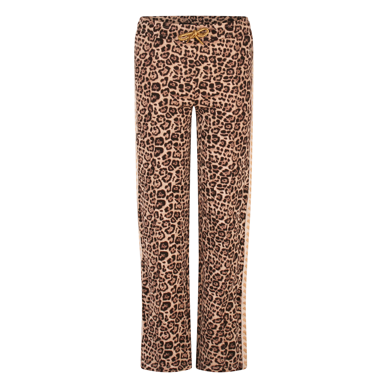 Trendy broek met mooie sierbies met goudkleur hartjes langs de pijp. Deze sweatpant heeft een opvallende panterprint. Hou je van een panterpak? Dan adviseren we je om ook te kijken bij het pantervest met art.nr. W10040.