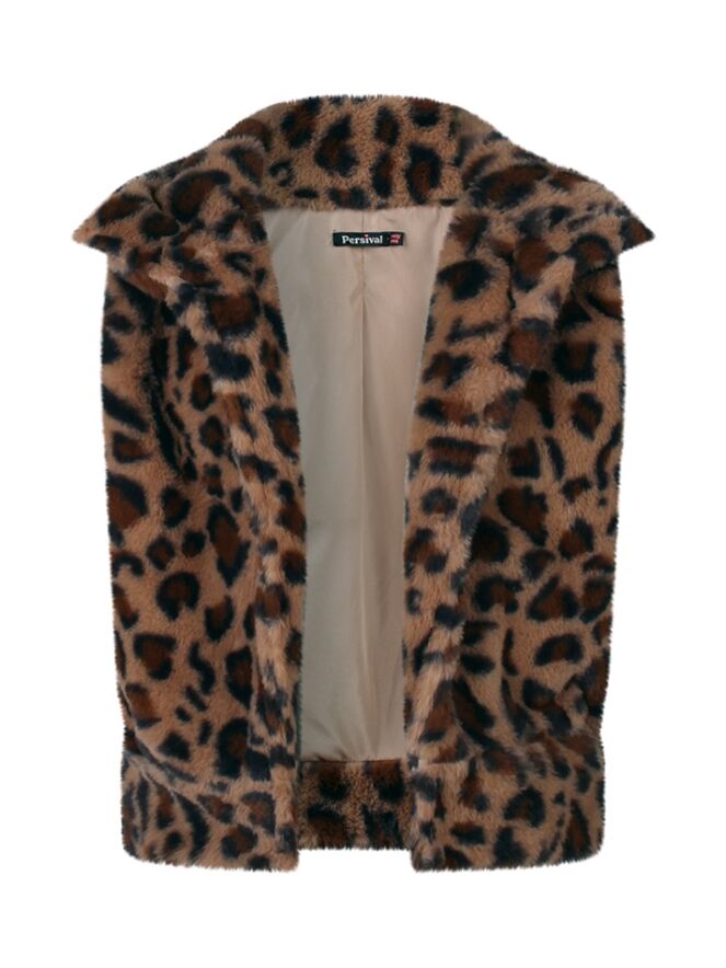 Voor de kleine diva?s die van een beetje extra houden! Dit fake fur gilet met panterdessin is zacht, stoer en superstylish. Perfect om over een top en jeans te dragen voor die extra touch op gewone dagen