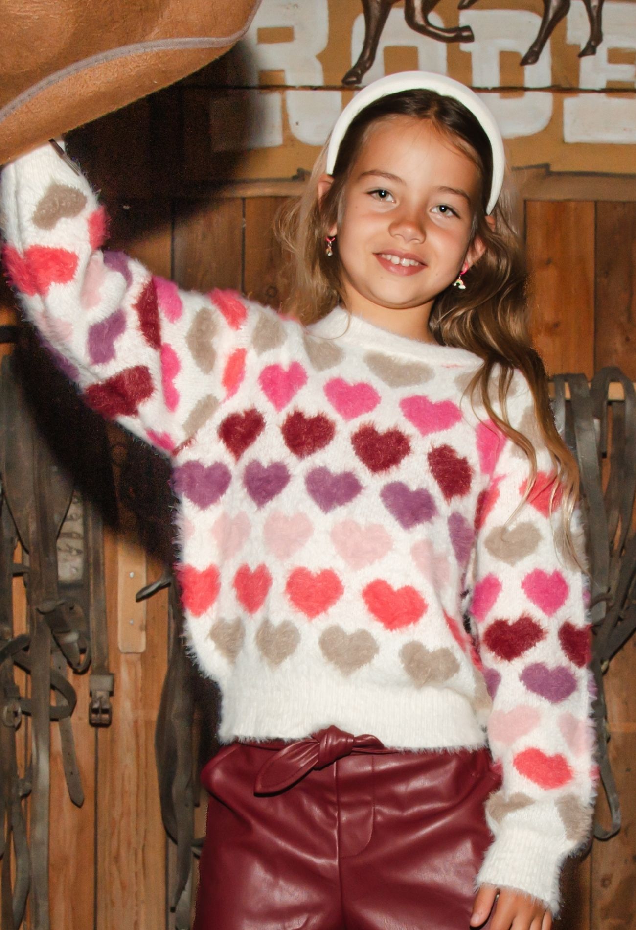 Een trui om verliefd op te worden! Deze zachte trui van featheryarn is niet alleen heerlijk warm, maar ook onweerstaanbaar schattig dankzij de ingebreide hartjes. Perfect om elke dag mee te knuffelen en je outfit net dat beetje extra liefde te geven.