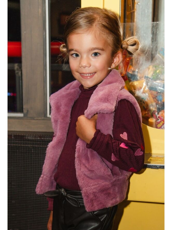 Deze schattige top voor meisjes is gemaakt van crincle stof, wat zorgt voor een speelse textuur. De smock-afwerking langs de hals en mouwen maakt de top lekker elastisch en comfortabel. Op de mouwen zitten geborduurde hartjes in verschillende kleuren, wat de top een extra vrolijke uitstraling geeft.