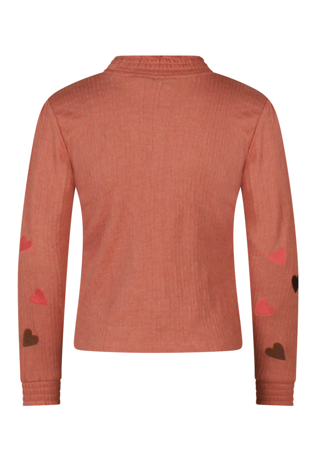 Deze schattige top voor meisjes is gemaakt van crincle stof, wat zorgt voor een speelse textuur. De smock-afwerking langs de hals en mouwen maakt de top lekker elastisch en comfortabel. Op de mouwen zitten geborduurde hartjes in verschillende kleuren, wat de top een extra vrolijke uitstraling geeft.