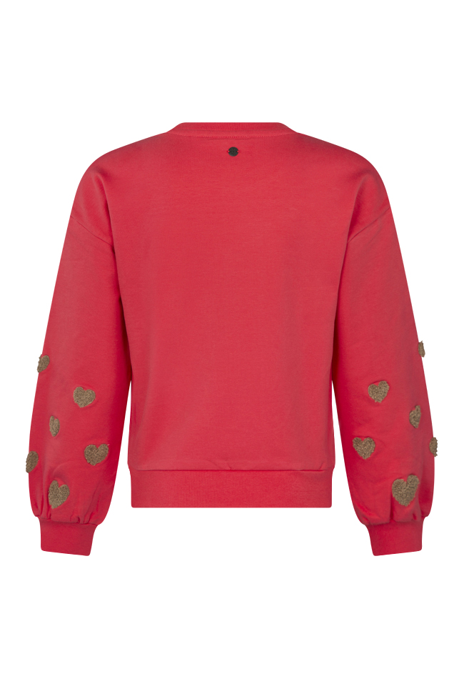 Wauwie! Wij zijn in love met deze leuke zachte sweater met mooie zachte teddy hartjes op de mouwen. Leuk te dragen op je favoriete spijkerbroek maar kan ook prima op de korte broek of een rokje!