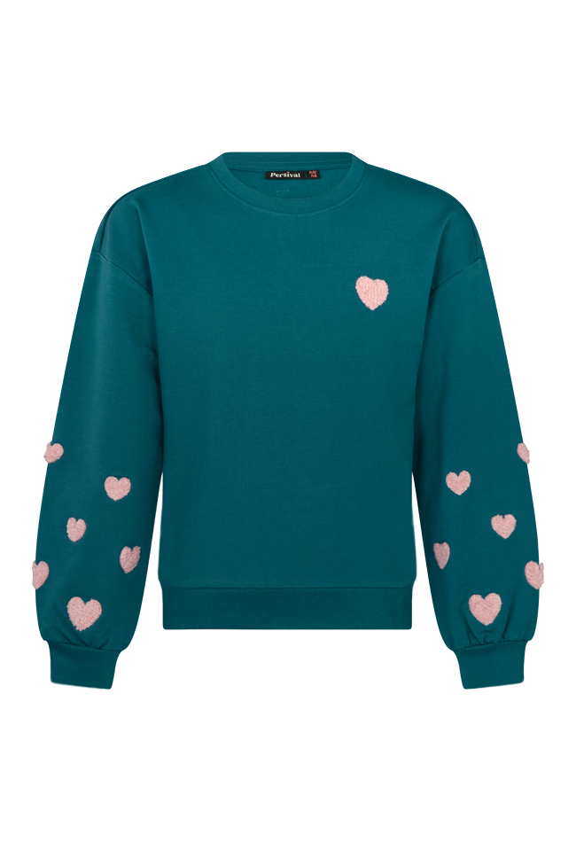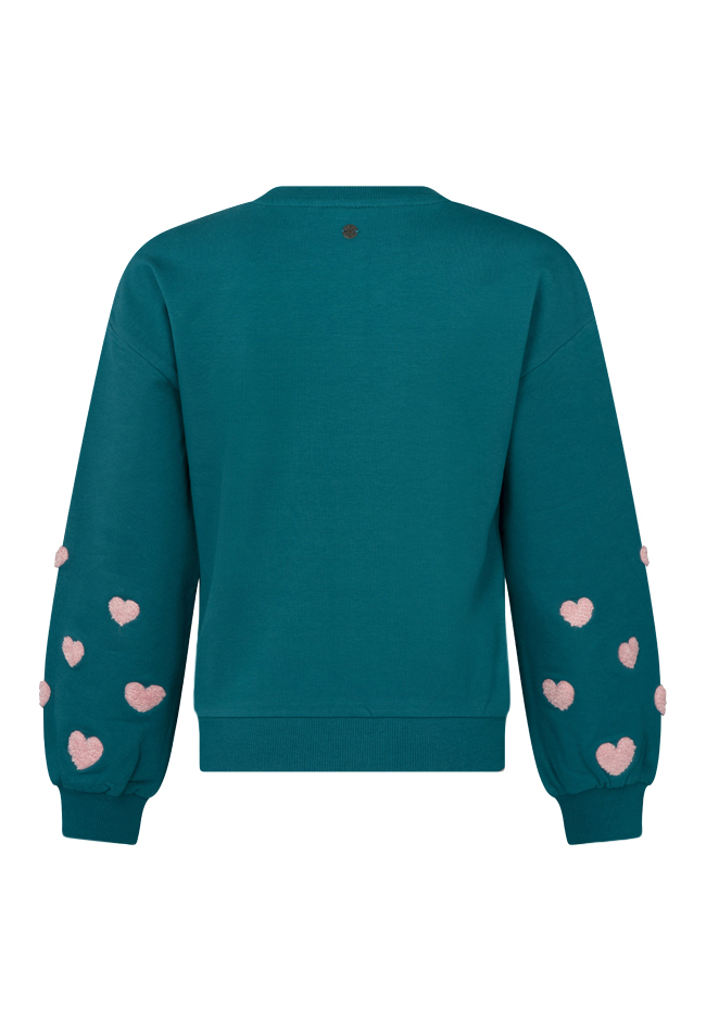 Wauwie! Wij zijn in love met deze leuke zachte sweater met mooie zachte teddy hartjes op de mouwen. Leuk te dragen op je favoriete spijkerbroek maar kan ook prima op de korte broek of een rokje!