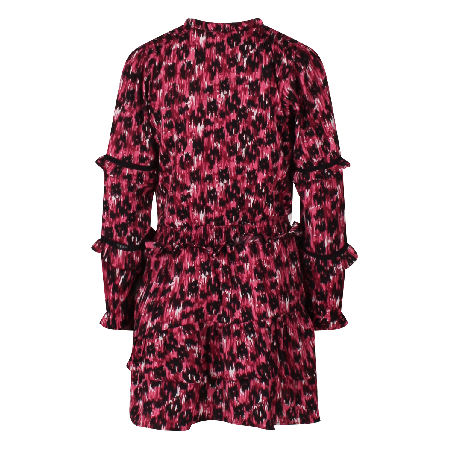 Een frissere dag? Dan kan dit vrolijk gekleurde jurkje gerust aan! Dit jurkje zit vol met leuke details zoals de ruche rond de kraag, smockwerk in de taille en aan het einde van de mouw. Mooie sierbelijning in de mouwen en mooie stroken in de rok. Legging eronder met stoere boots en de set is compleet!