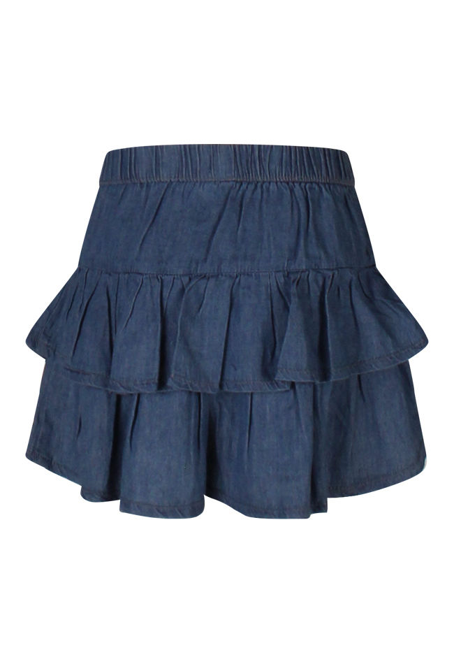 Mooi strokenrokje van 100% katoen in denim style! Dit rokje heeft een mooie strik voorop en zacht elastiek in de taille. Leuk met een legging eronder en een leuk shirt met bijvoorbeeld een giletje.
