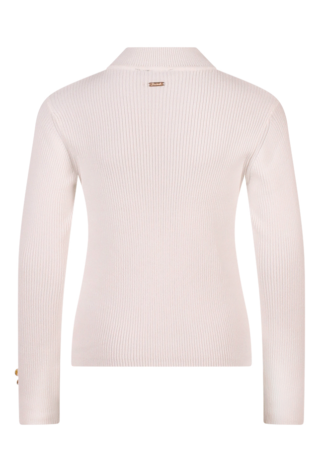 Sjiecke trui met lekker veel stretch! Deze trui met een heerlijk omsluitende turtleneck heeft glimmende goudkleurige knopen op het uiteinde van de mouw en aan een kant van de hals. Draag hem op een jeans met wijde pijpen voor een leuke style met een twist!