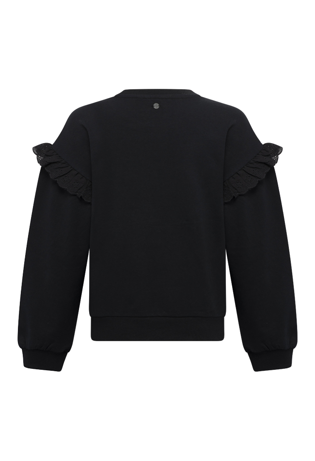 Poezig truitje voor lieve meisjes! Deze zachte sweater heeft naast de leuke print ook nog een mooie ruche over de schouder. Cozy, warm, en lekker comfortabel!