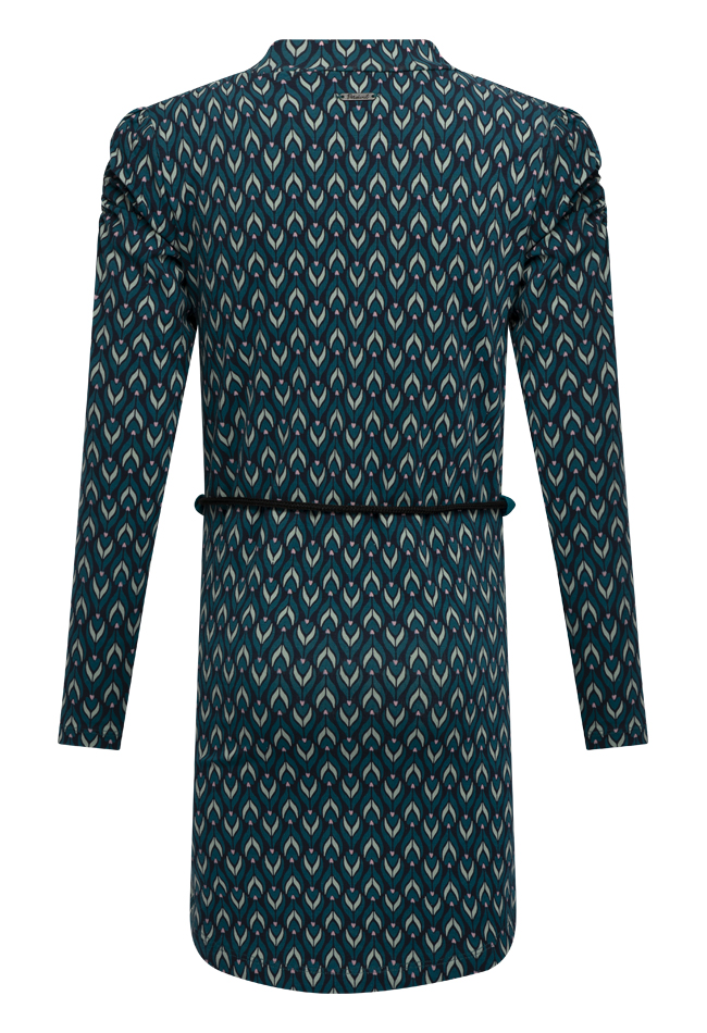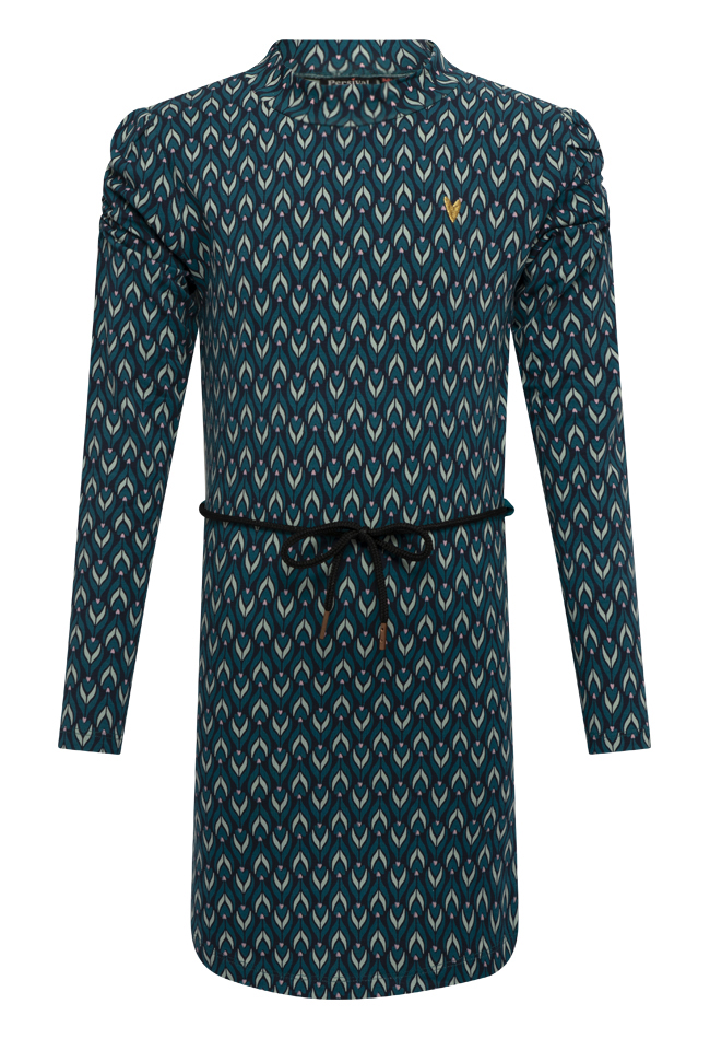 Eenvoudig jurkje in een opvallend retrodesign, recht modelletje met bijgeleverd koord wat gebruikt kan worden als ceintuurtje. Dit jurkje heeft een turtleneck.