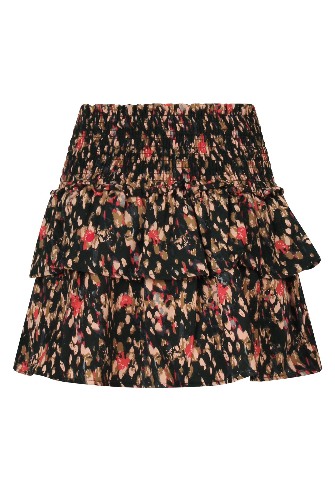 Deze meisjesrok van zachte crepe stof is versierd met een vrolijk confettidessin dat elke dag kleur geeft. De smockband in de taille zorgt voor een comfortabele pasvorm én een speelse touch. Perfect voor feestjes, school of gewoon lekker spelen!