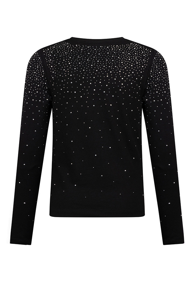 Hoe leuk is dit shirt voor meisjes! De all-over strassteentjes maken hem extra feestelijk. Combineer hem met een van de paillettenrokjes uit de partycollectie voor een echte feestlook, of draag hem op een jeans voor een stoerdere stijl.