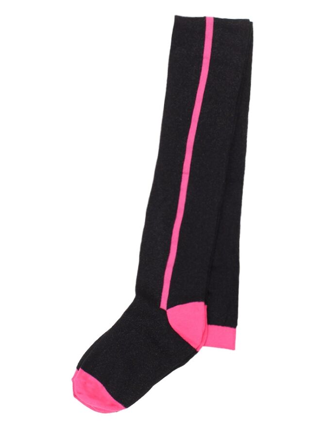 Maillot met allover lurex glitter en verticale ingebreide contrast bies.