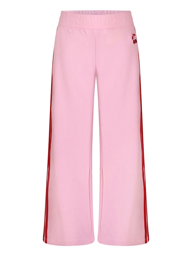 Cherry's in plaats van strikjes! Wij zeggen yes! Deze leuke broeken hebben een wijde pijp met mooie bies over de broekspijp en jawel een borduring als kers op de taart! Sweet!