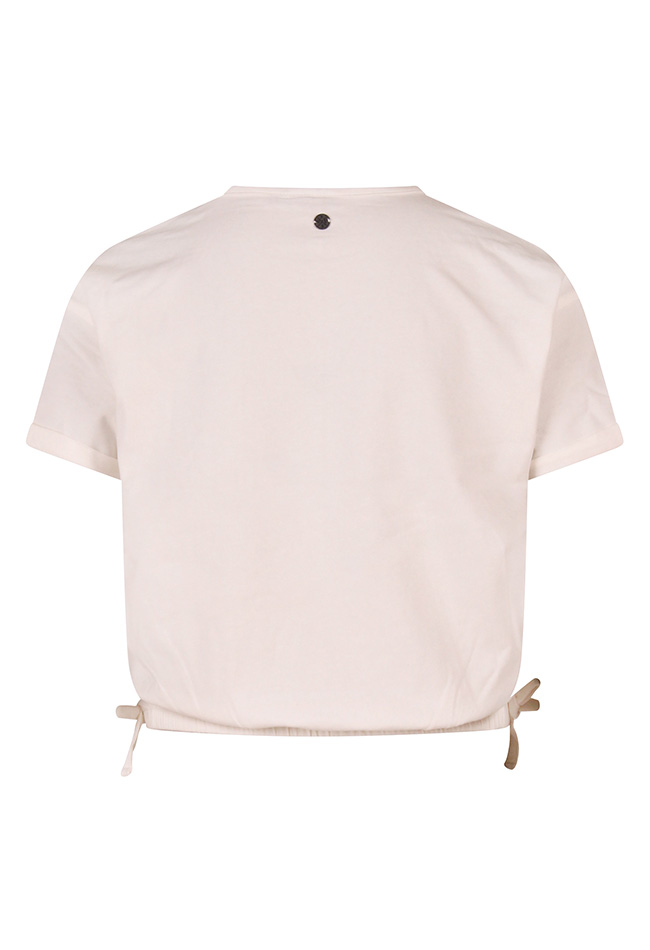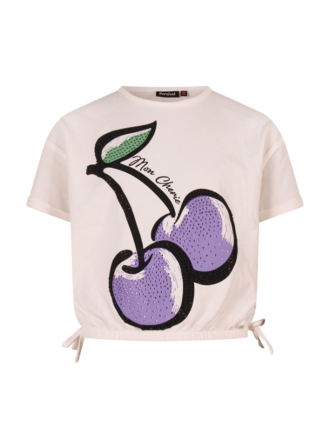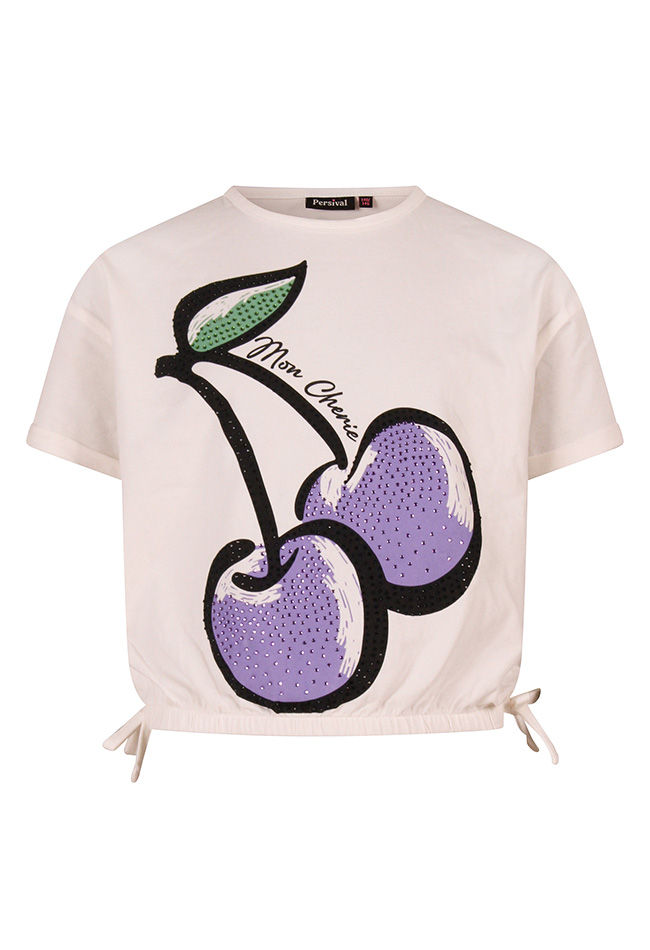 Een hip T-shirt dat stijl, comfort en vrolijke details moeiteloos samenbrengt. Het shirt is versierd met een opvallende grote kersenprint, die sprankelt door de glinsterende strass stenen. Dankzij het elastiek in de taille is het shirt cropped, wat zorgt voor een trendy, moderne look. Gemaakt van zachte, comfortabele stof voelt het T-shirt heerlijk aan en is het perfect te combineren met een rok, short of jeans.
