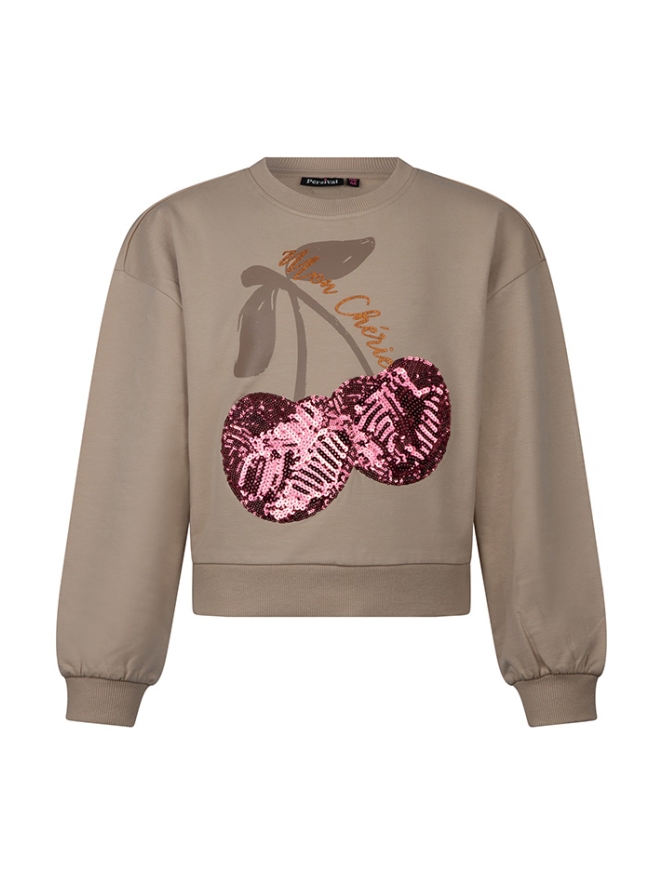 Deze meisjes sweater heeft een vrolijke kersenprint met pailetten en een leuke tekst op de voorkant. Dankzij de boxy fit is de sweater comfortabel en trendy tegelijk. Combineer hem met een jeans en sneakers voor een stoere, casual outfit.