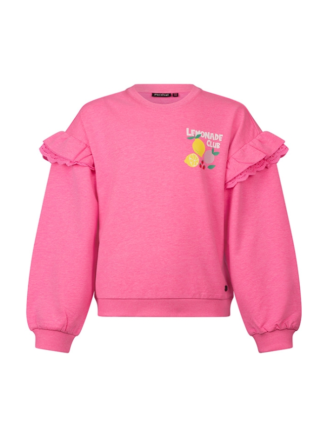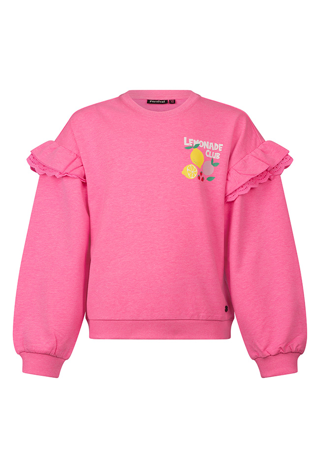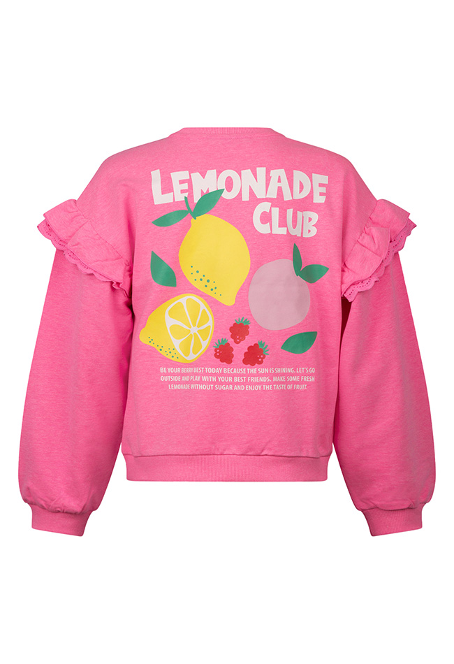 Be your berry best today because the sun is shining! Deze leuke Lemonade club sweater laat jou stralen dit voorjaar! met een mooi ruche op de mouw met een mooi kanten randje. Lemons, grapes and berry's!