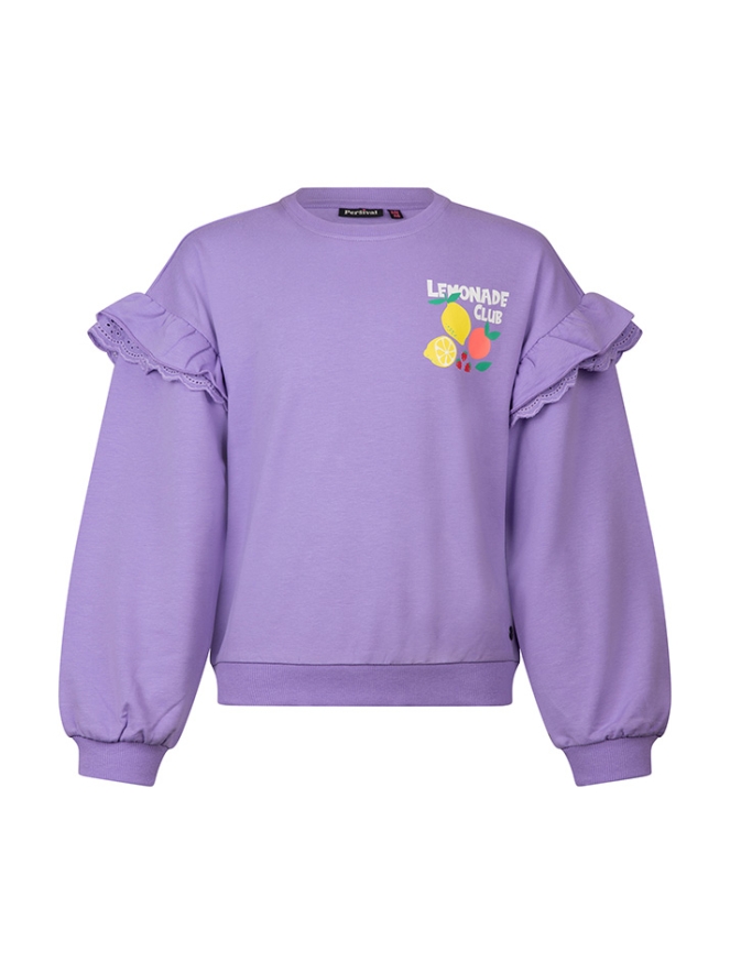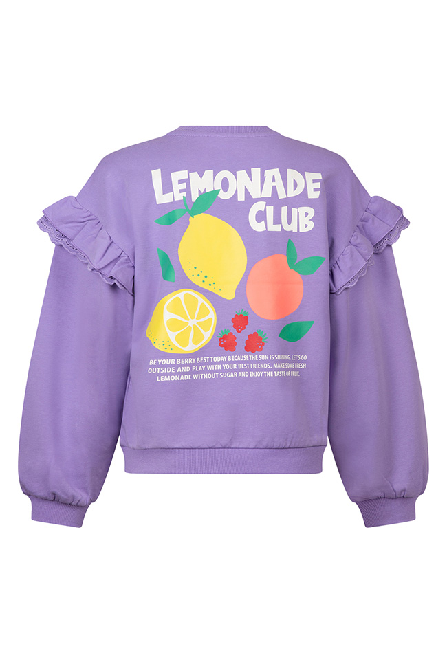 Be your berry best today because the sun is shining! Deze leuke Lemonade club sweater laat jou stralen dit voorjaar! met een mooi ruche op de mouw met een mooi kanten randje. Lemons, grapes and berry's!