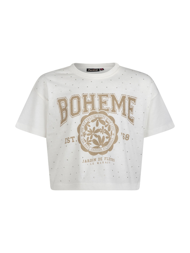 Geef haar garderobe een sportieve en glinsterende touch met dit trendy meisjes T-shirt. Het shirt heeft een boxy fit voor een comfortabele en stoere look, perfect om te combineren met jeans, leggings of een rok. Op de voorkant pronkt een Varsity-geïnspireerde print, afgewerkt met strass-steentjes die subtiel schitteren bij elke beweging.