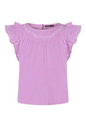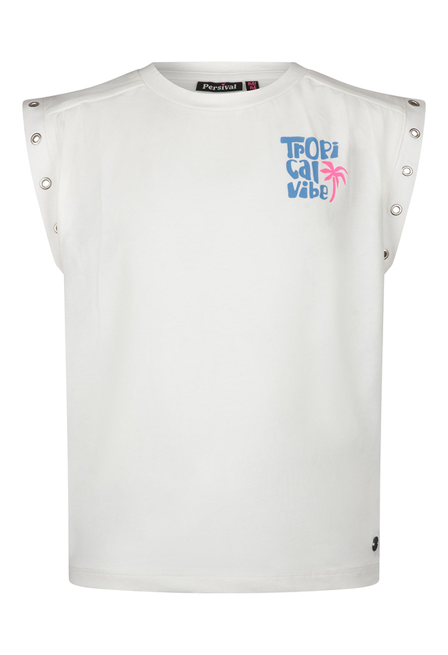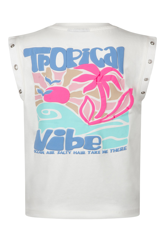Deze vrolijke meisjes singlet brengt je meteen in tropische sferen. De frisse kleuren en zomerse look maken dit het perfecte item voor zonnige dagen. De eyecatcher? De stijlvolle rugprint met de tekst Ocean air, salty hair, take me there. Ideaal voor kleine strandliefhebbers en avonturiers. De speelse nestels in het armgat geven de top een trendy en unieke twist.