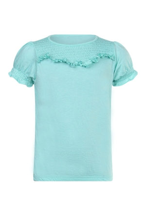 Dit opvallende T-shirt combineert speelse details met een trendy uitstraling. Voorop zijn glinsterende pailletten verwerkt die een schitterend effect geven, perfect om een outfit net dat beetje extra te geven. De vlindermouwen zorgen voor een elegante touch, terwijl het knoopdetail bij de taille het shirt een moderne, flatterende look geeft. Gemaakt van zachte, comfortabele stof voelt het T-shirt prettig aan tijdens het dragen.