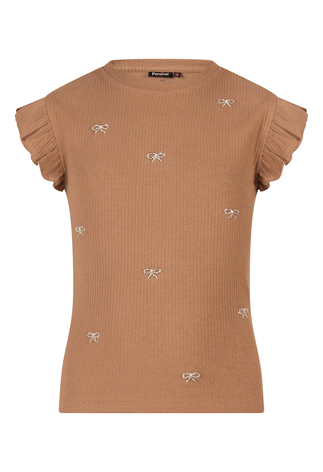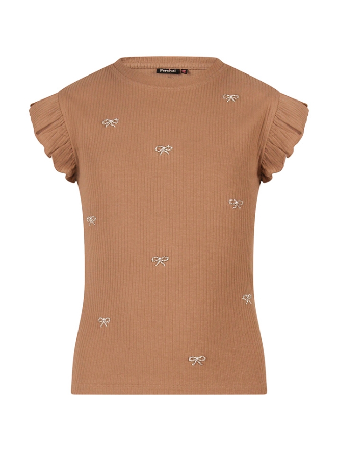 Dit schattige T-shirtje voor meisjes combineert comfort met een trendy, speels detail. Op de voorkant zijn kleine strikjes gevormd uit glinsterende kraaltjes, wat een vrolijke en elegante touch geeft. Gemaakt van zachte stretch stof voelt het heerlijk comfortabel. Perfect te combineren met een rokje, legging of broekje voor een complete, stijlvolle look.